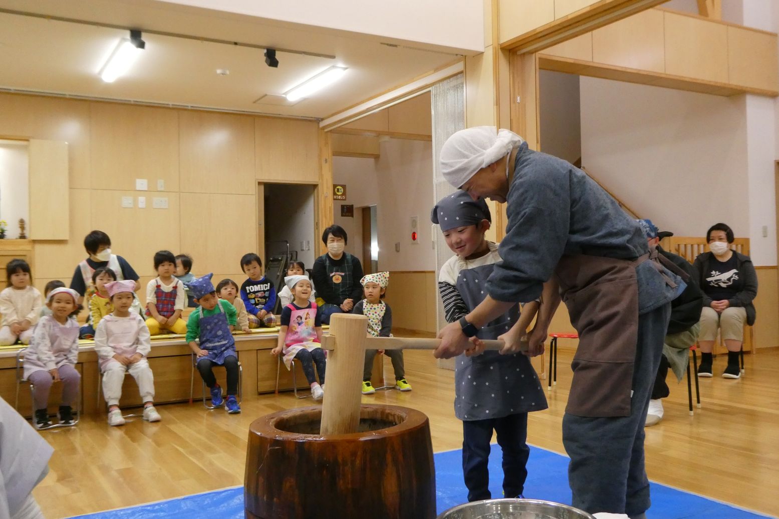 理事長先生にお手伝いしてもらって、今年もお餅つきをしました。