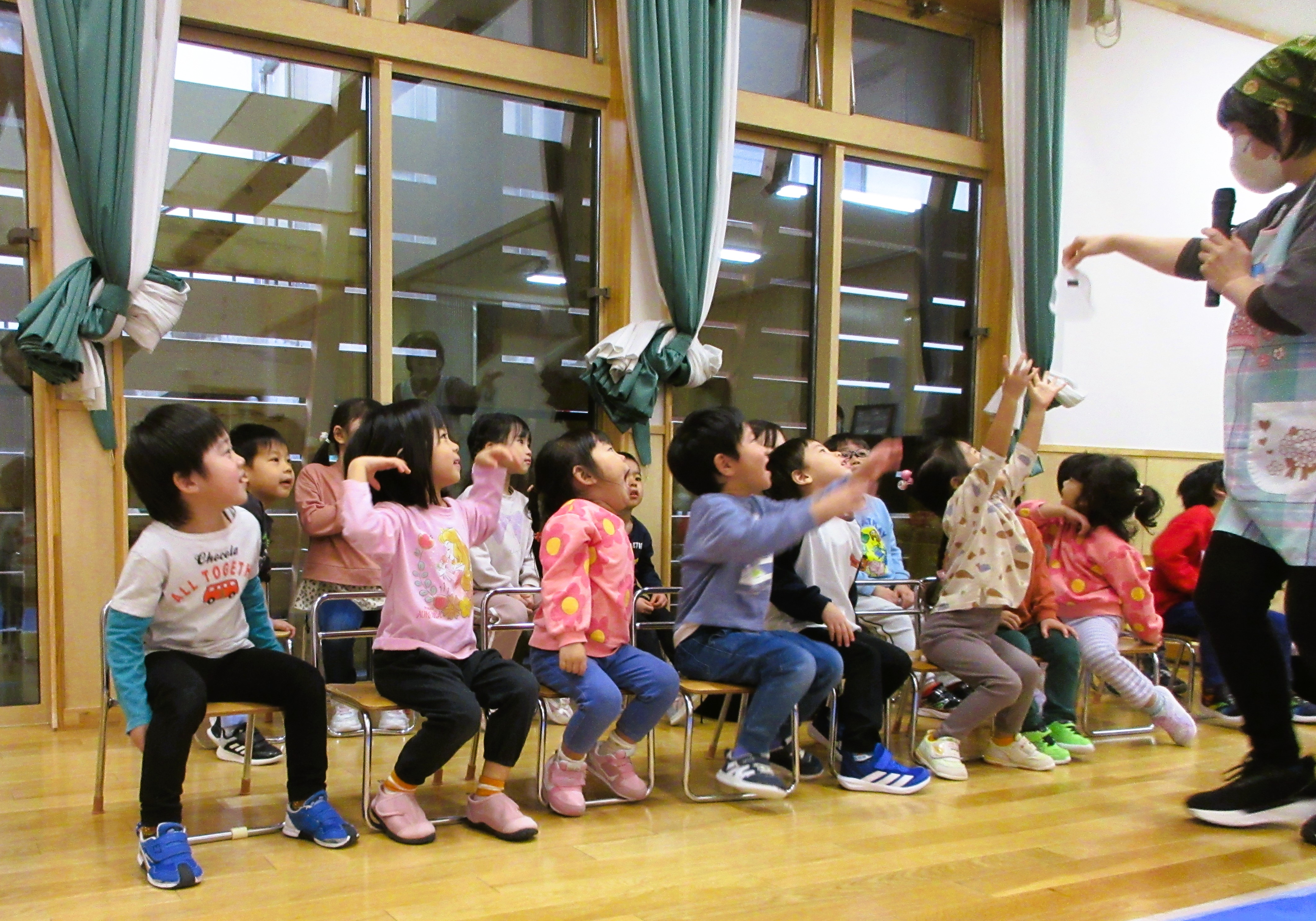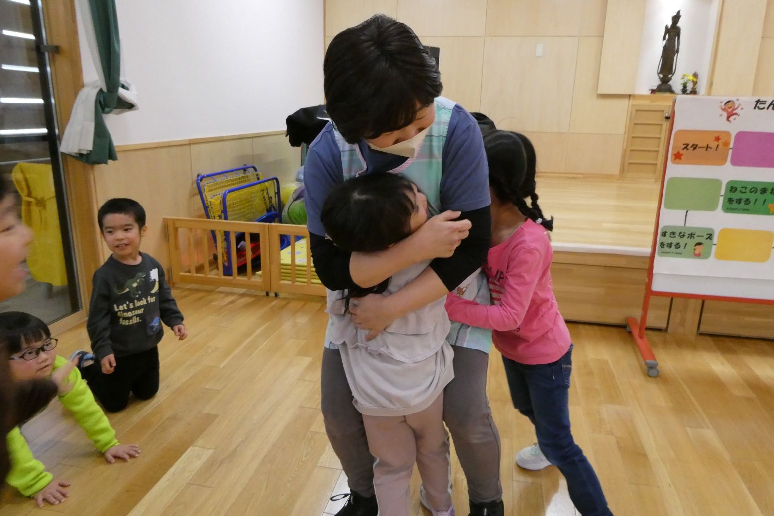 ”せんせいにギューをする ” でした。みんなとってもうれしそう。